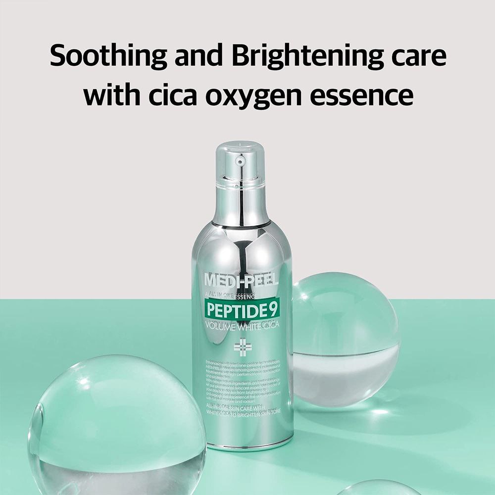 اسنس روشن کننده و تسکین دهنده 9 پپتاید سیکا مدی پیل با حجم 100 میل MEDI-PEEL PEPTIDE9 VALUME ESSENCE PRO WHITE CICA
