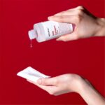 1. پس از شست‌وشوی کامل صورت، مقدار مناسبی از تونر را روی پد پنبه‌ای بریزید یا مستقیماً با دست تمیز روی پوست بزنید.